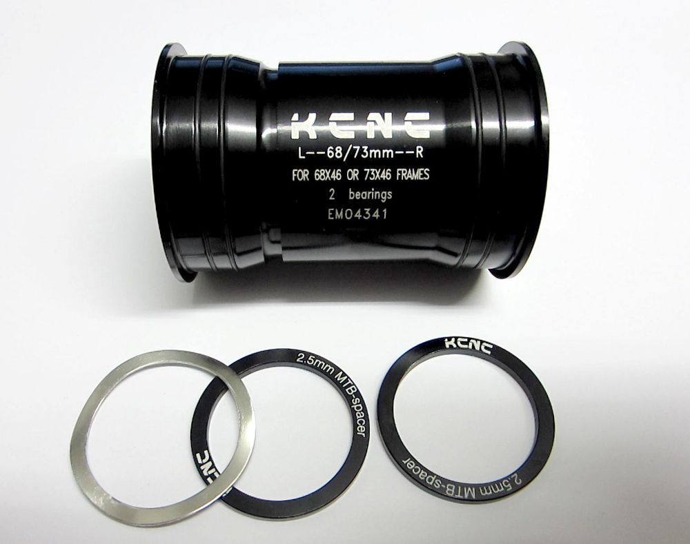 Pressfit 30 complete bottom bracket from KCNC. Fits PF30 spec frames with internal Ø46mm, for BB30 cranksets with Ø30mm axles. Full stainless bearings.