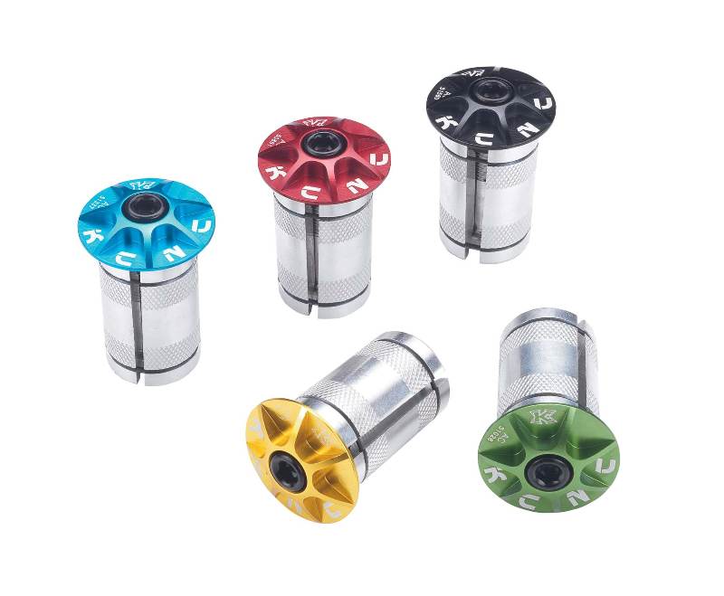 Aheadset adjuster suitable for carbon fork steerers as well as alloy. 3 alloy collets 37mm long expand inside the steerer tube to allow the top cap to be pulled down to tension the headset bearings.