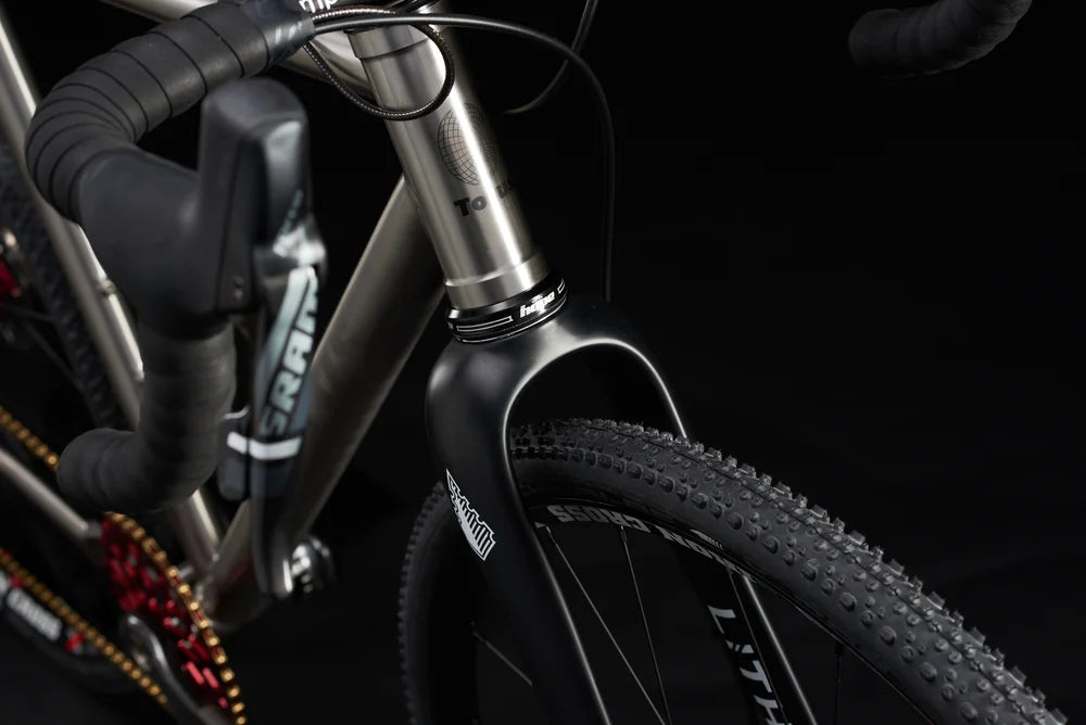 This is the Ti Cyclo-cross race bike. It's designed to finish every CX race without having to change bikes thorugh it being designed to work in mud. Drawing on our experience from MTB racing we have designed the drivetrain to cope with the most arduous muddy race conditions. We've tested it over many CX seasons and we know it works. The frame is 1x specific - no front mech. It uses an 142mm rear hub with an mtb style 1x specific clutch type mech that does actually work in mud - so no more mud induced chain suck resulting in snapped mech hangers or derailleurs. The mud clearance is as big as is possible - so no more mud clogging around the fork or the bottom bracket/chainstay area. It's disc specific, externally routed - there are no holes to fill up with water! It's titanium so it's smooth